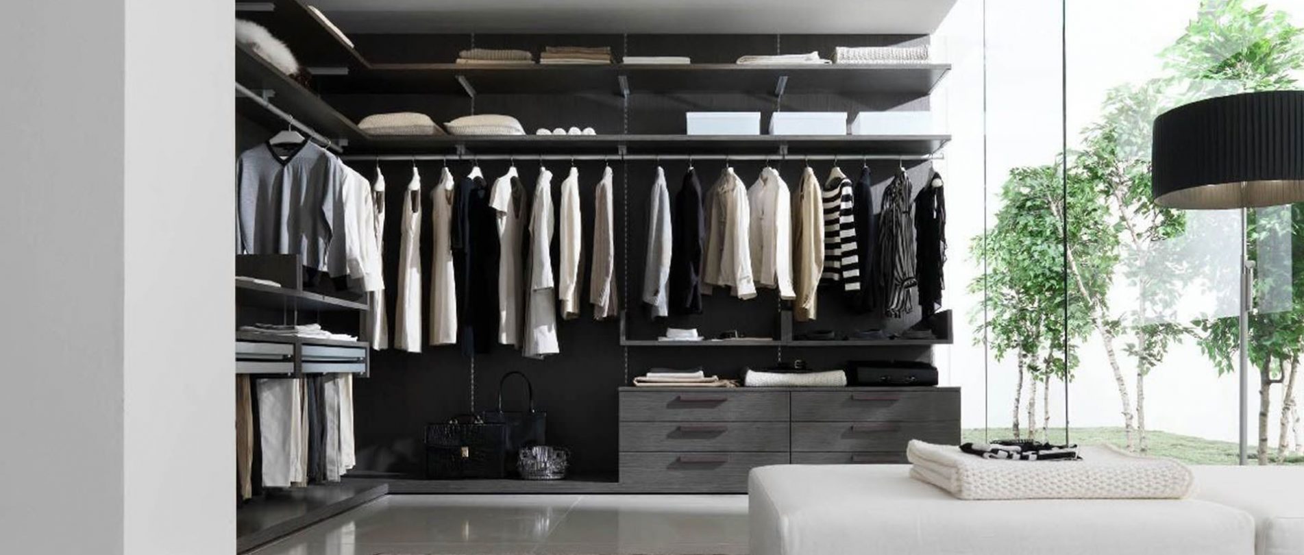 Zalf designers use adjustable systems that can be easily integrated into your space. A variety of systems is proposed, such as wardrobes with sliding or hinged doors and walk-in closets. Zalf’s wardrobes can be very easily reorganised as one desires, thanks to interior fittings like pull-out trays, shelves and drawers. The materials used are wisely selected to sustain heavy contents, and resist scratches, stains and abrasions.