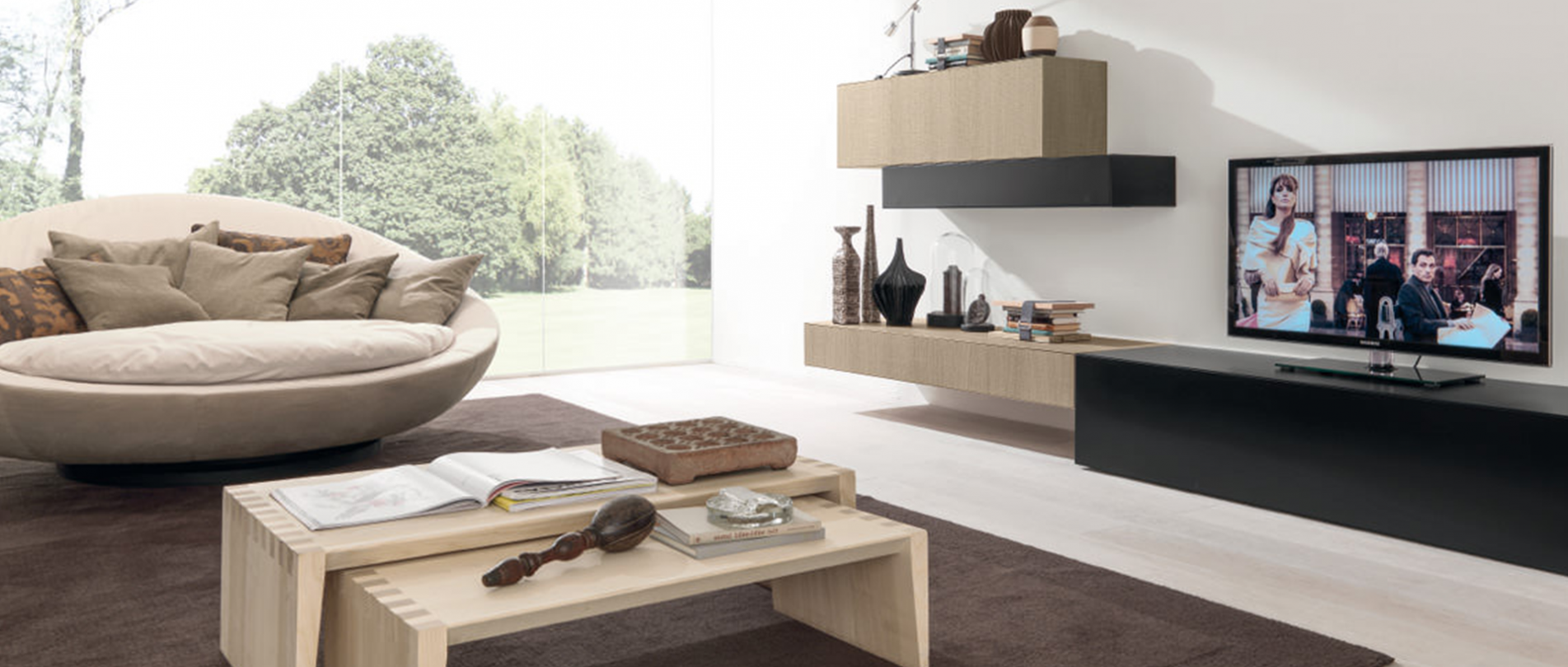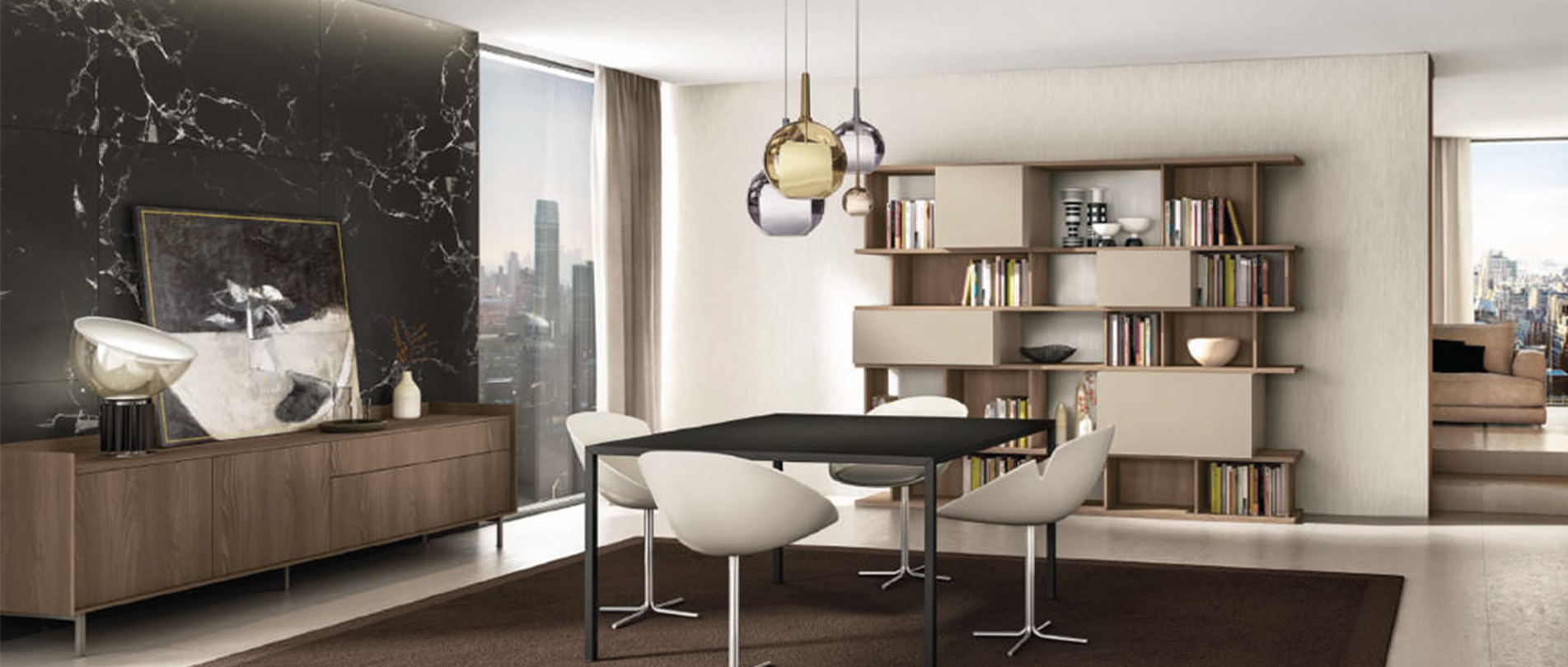 Zalf’s compositions consist of multifunctional furniture like television displays, bookshelves and other decorative unit solutions which can provide storage space while adding an embellishing and warm touch to the room. Customized solutions are available thanks to the adjustable shelves that may be used to divide or unite a space. This flexibility enables you to create geometrical motifs according to your preferences. Wall-mounted storage units and supports are used for greater versatility, especially for utilization of empty space for storage.