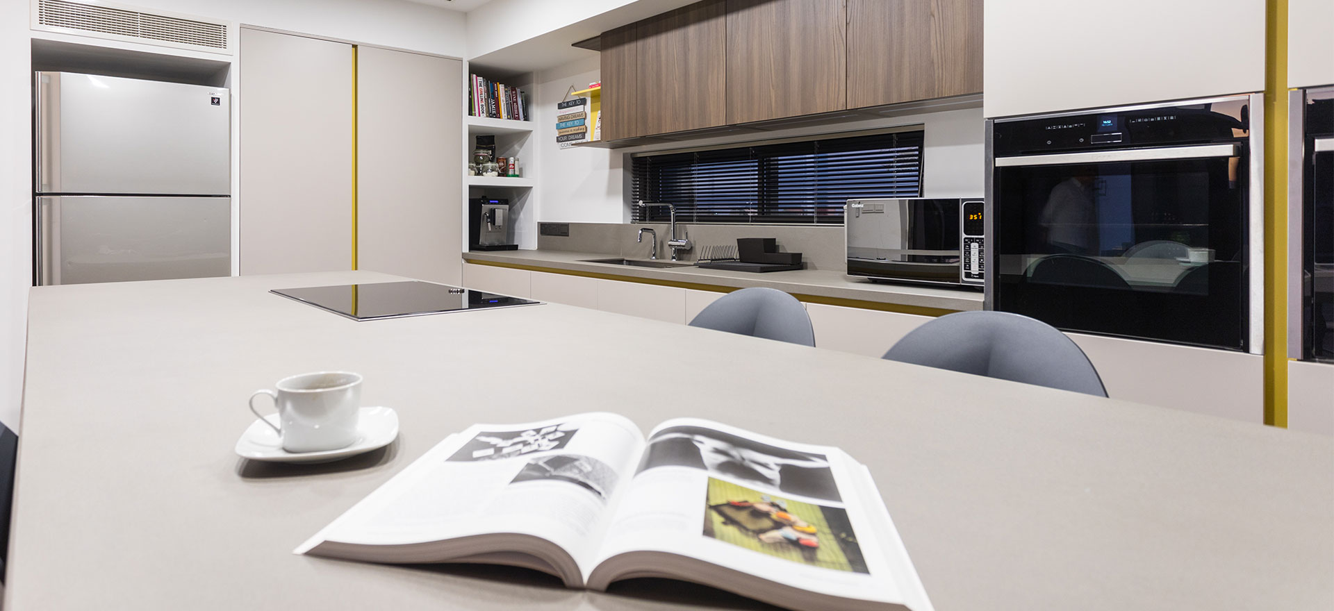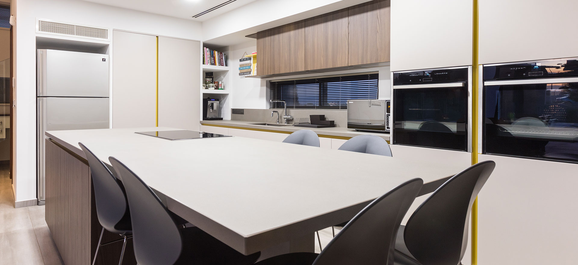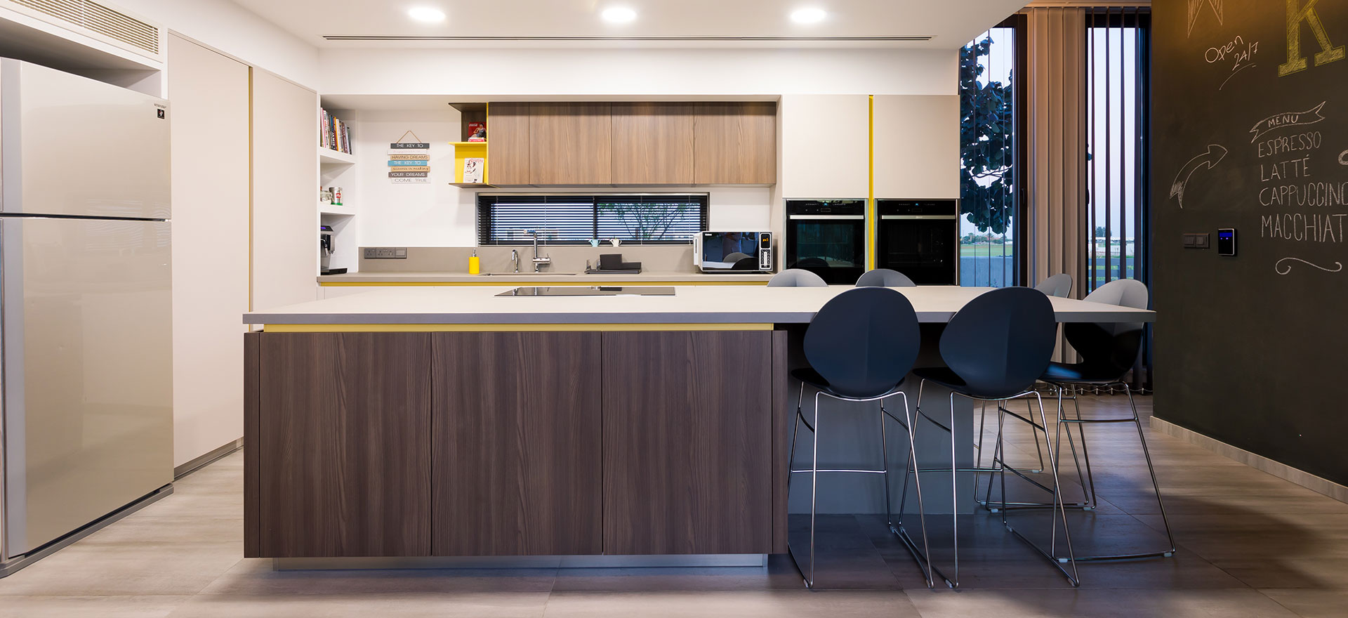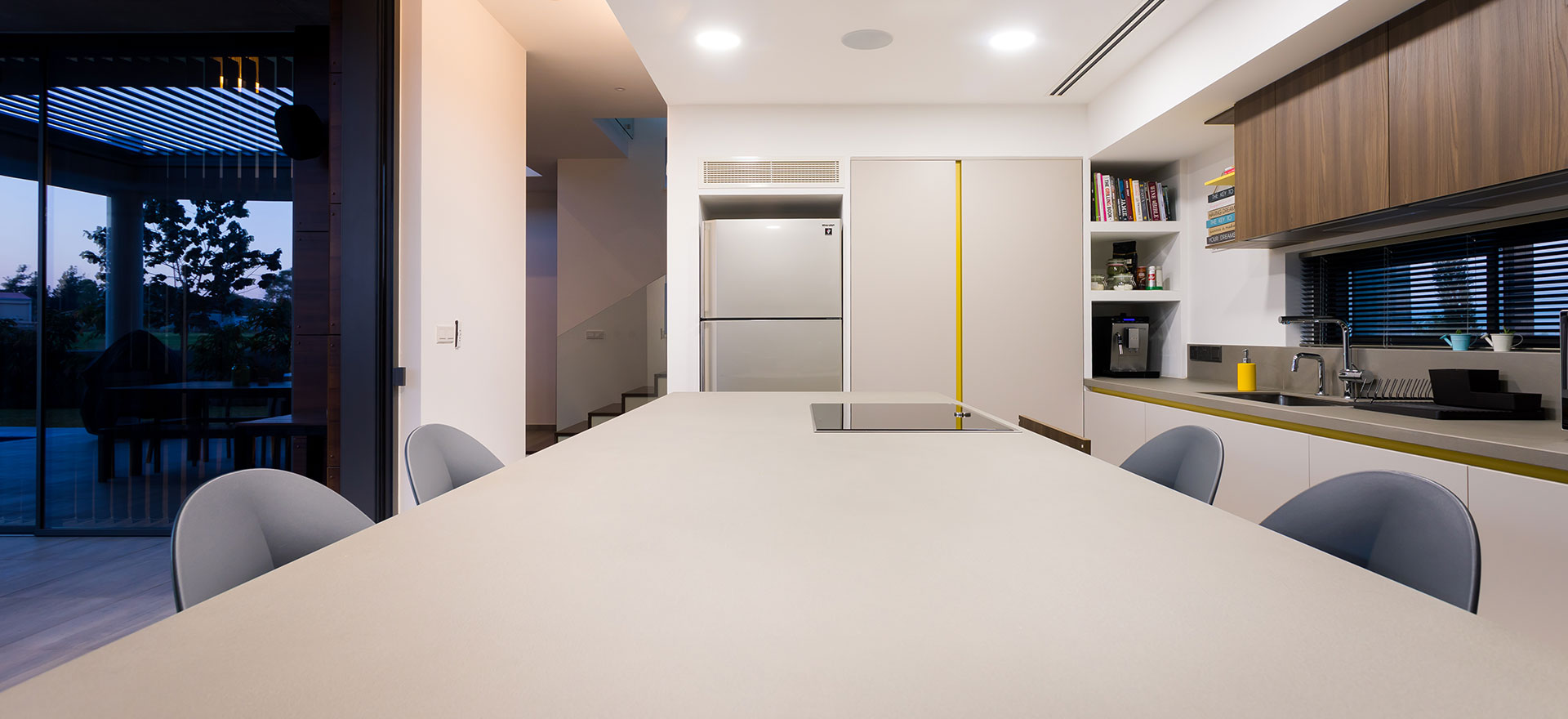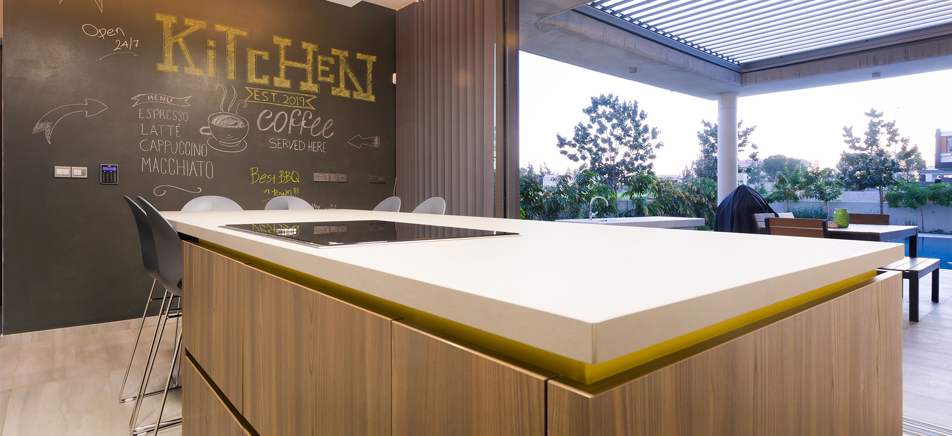 Kitchen Studio Living & More Interior Design team extends its portfolio with another exceptional kitchen project, at a modern residence in Lakatamia, Nicosia. The new kitchen is developed with Gruppo Euromobil’s Filo Lain materials and technology, as the aesthetic interventions, in its design, create an environment that fully integrates with the pool area.