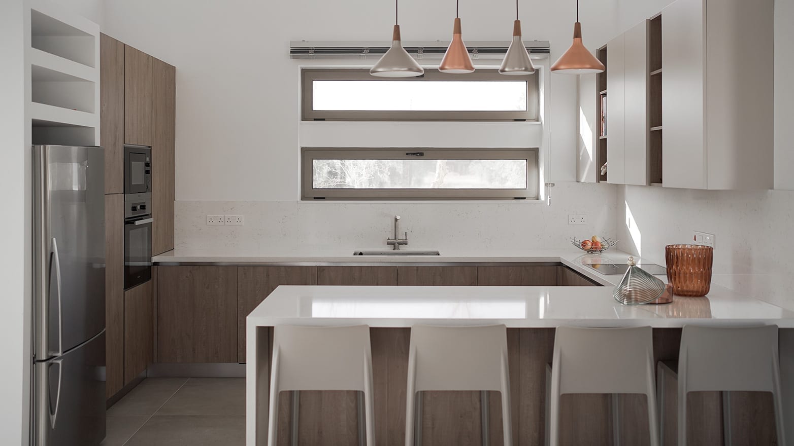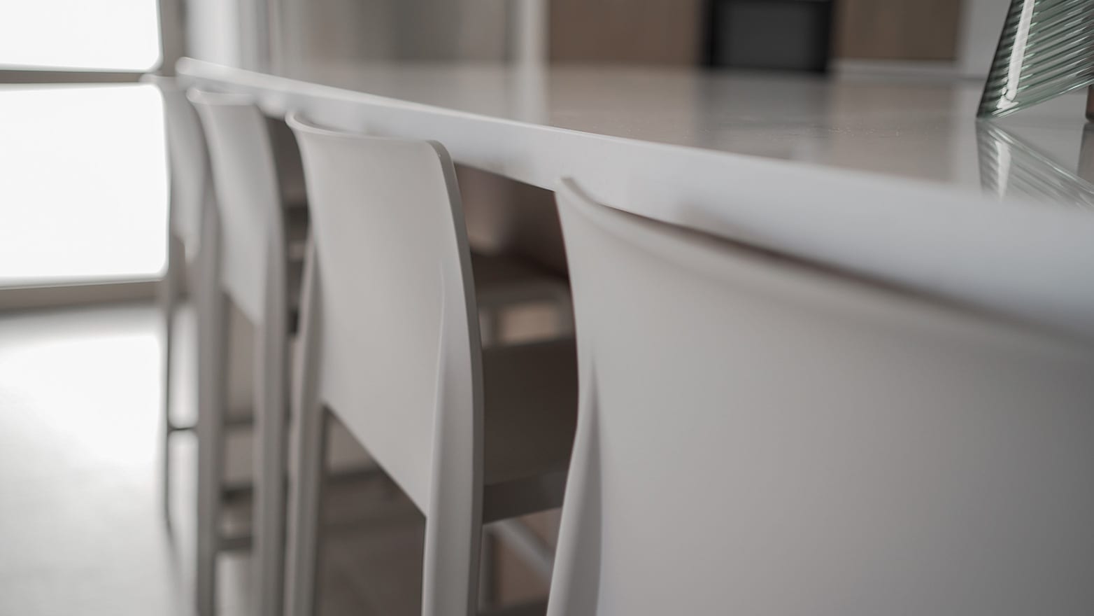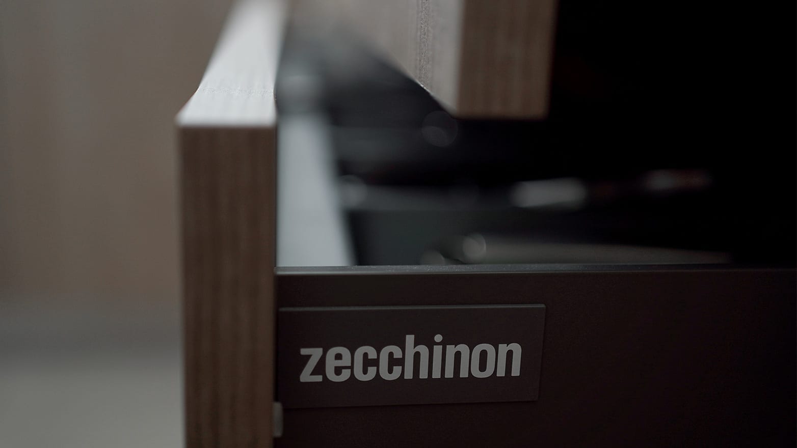 Incorporating features from two different models of Zecchinon Cucine, the kitchen area is designed in view of the practicality and the flexibility that reinforce the everyday experience.