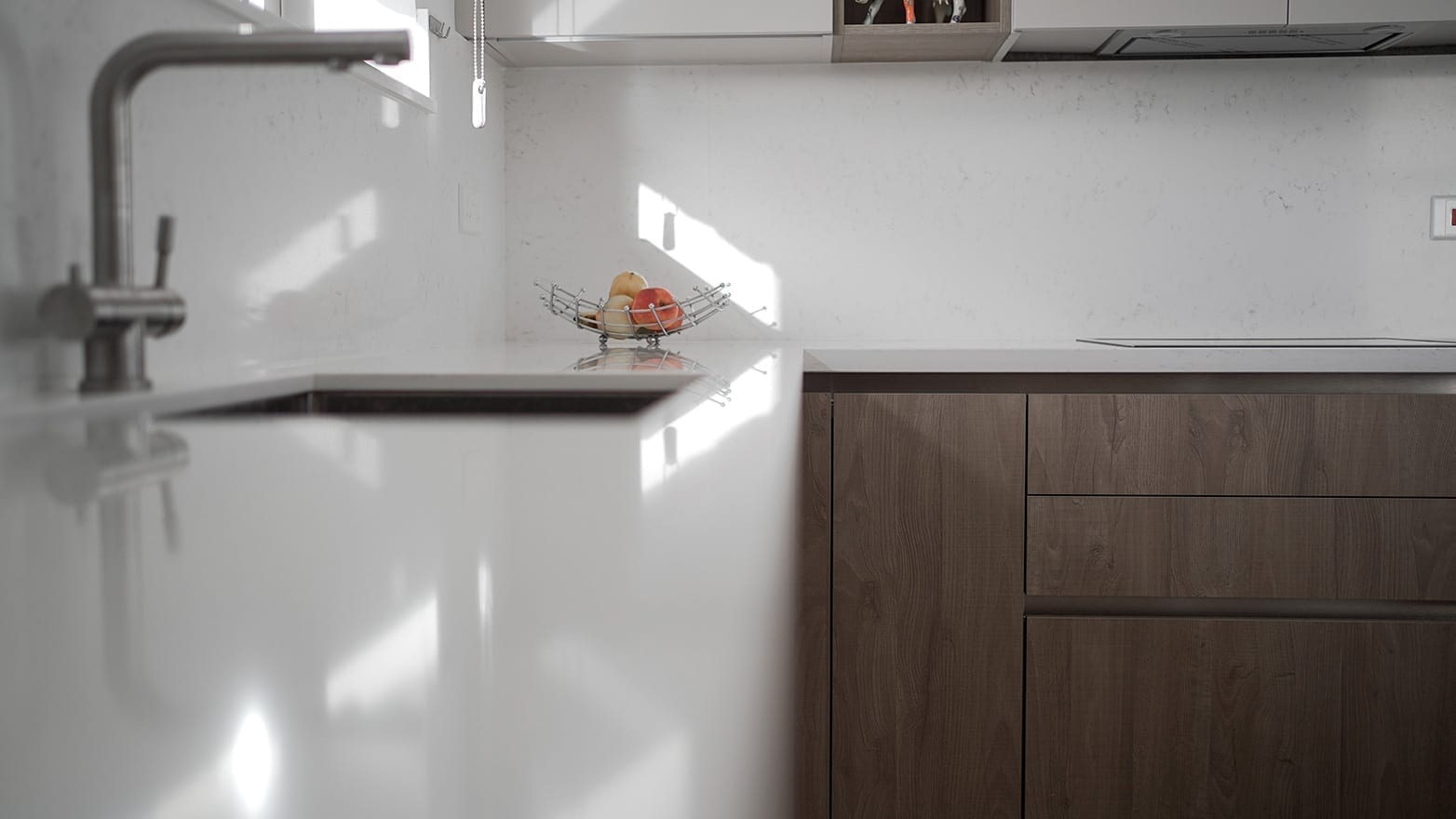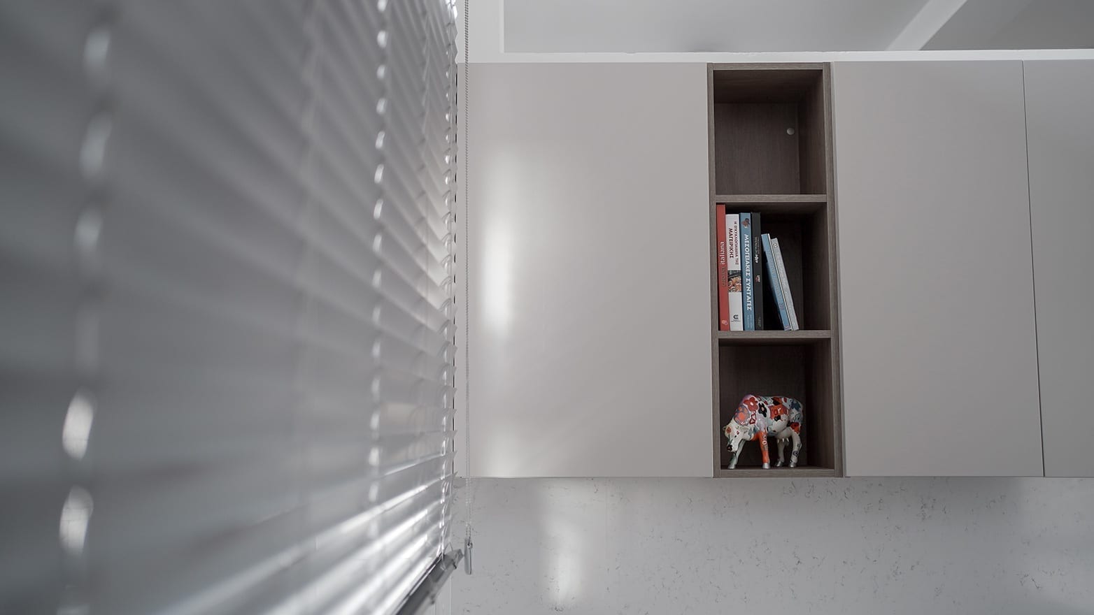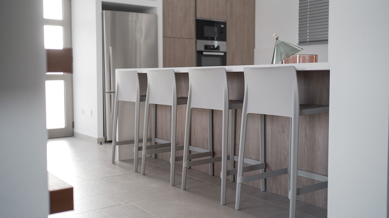 Incorporating features from two different models of Zecchinon Cucine, the kitchen area is designed in view of the practicality and the flexibility that reinforce the everyday experience.