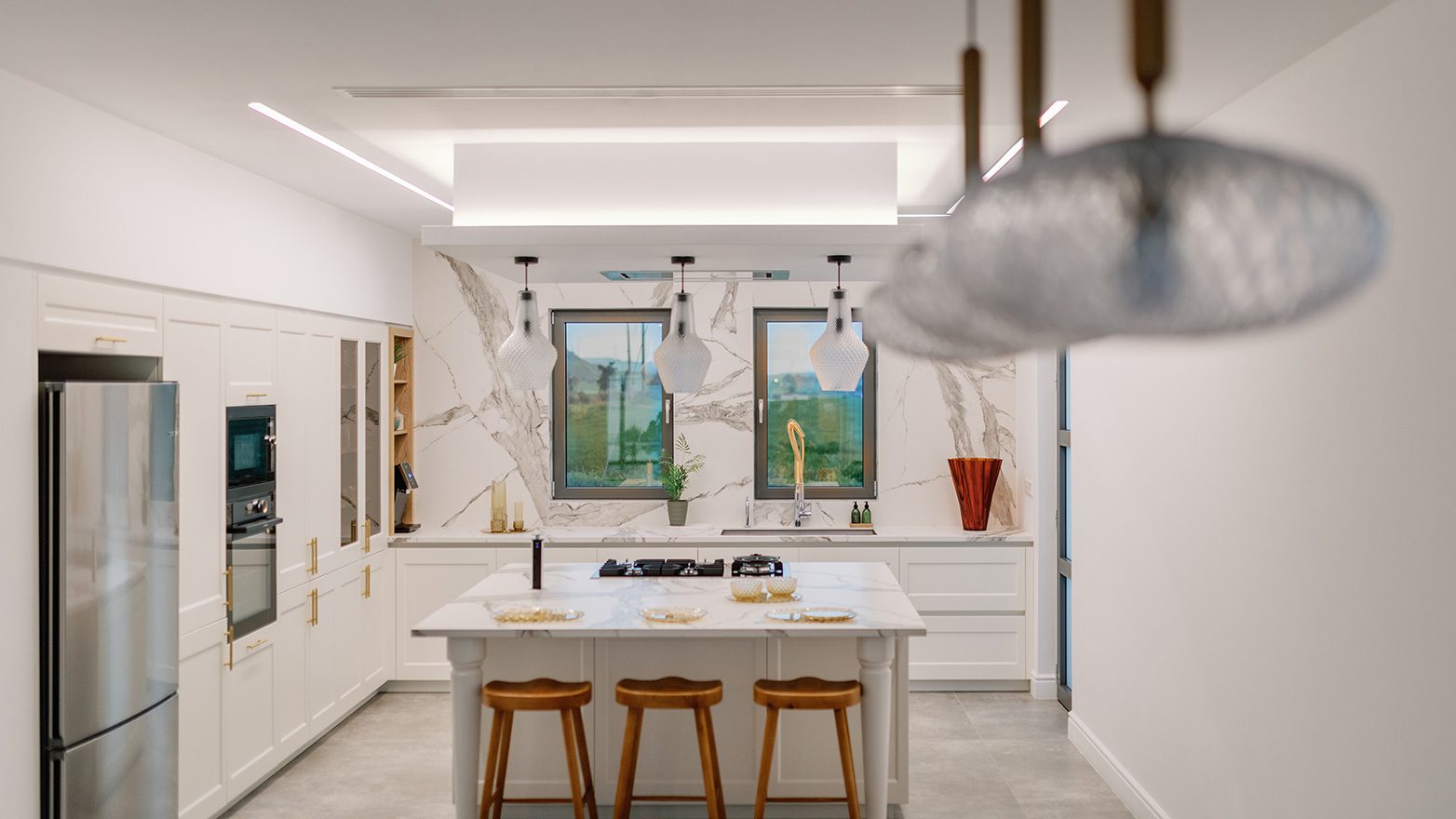 Kitchen Studio Living & More Interior Designers’ latest kitchen project takes place in a modern residence in Kalo Chorio, in the Larnaca countryside.