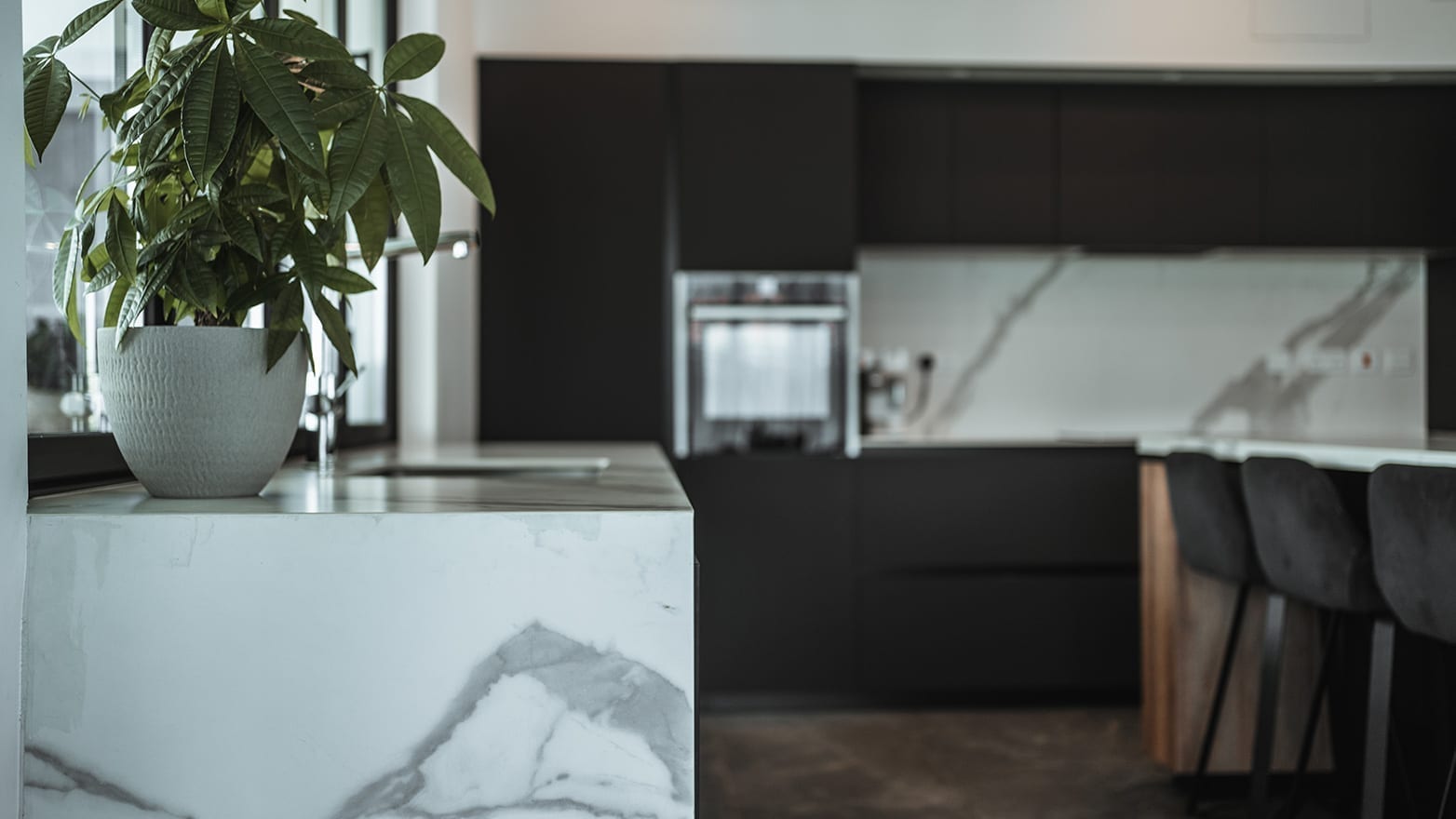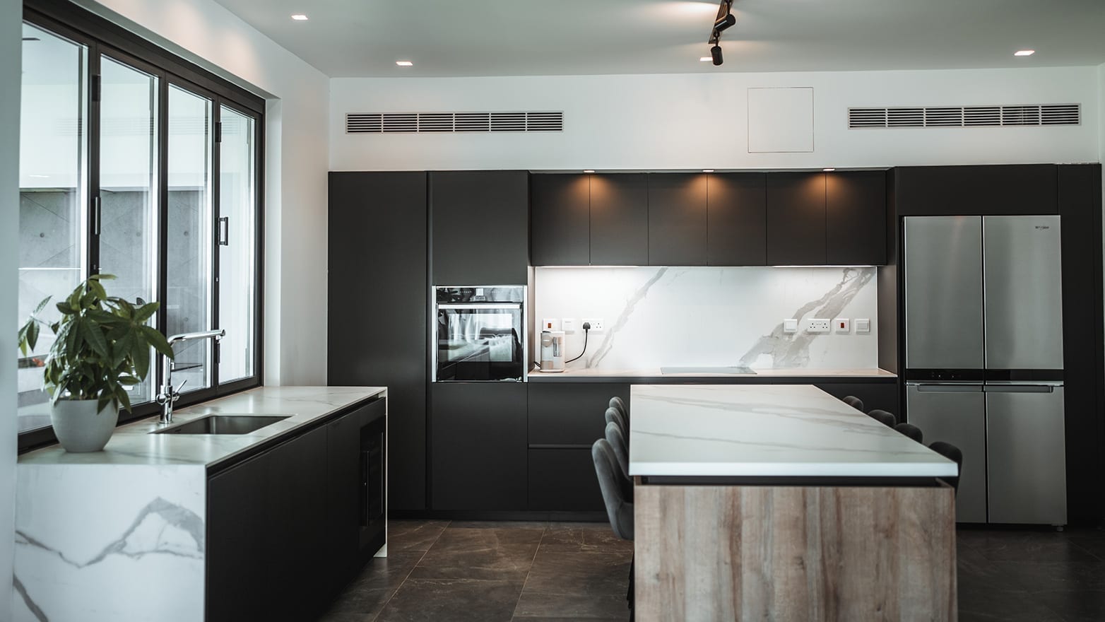 Kitchen Studio Living & More Interior Designers take inspiration from the exquisite scenery of Lakatamia to create a versatile kitchen for a spacious, modern residence.