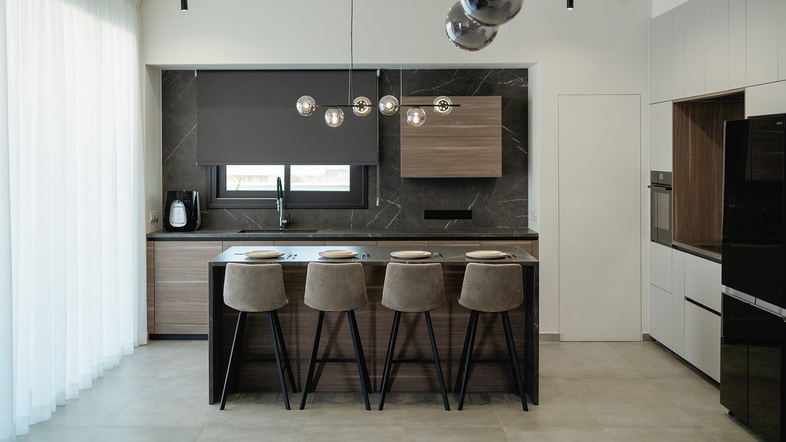 A kitchen style that blends different materials and finishes in designing a space that serves everyday needs and satisfies with its beauty and richness.