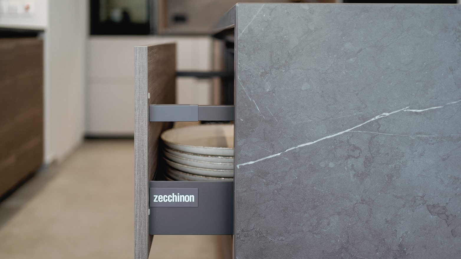 The Tiffany kitchen model by Zecchinon Cucine is selected to ensure optimum functionality and to create different levels of experience.