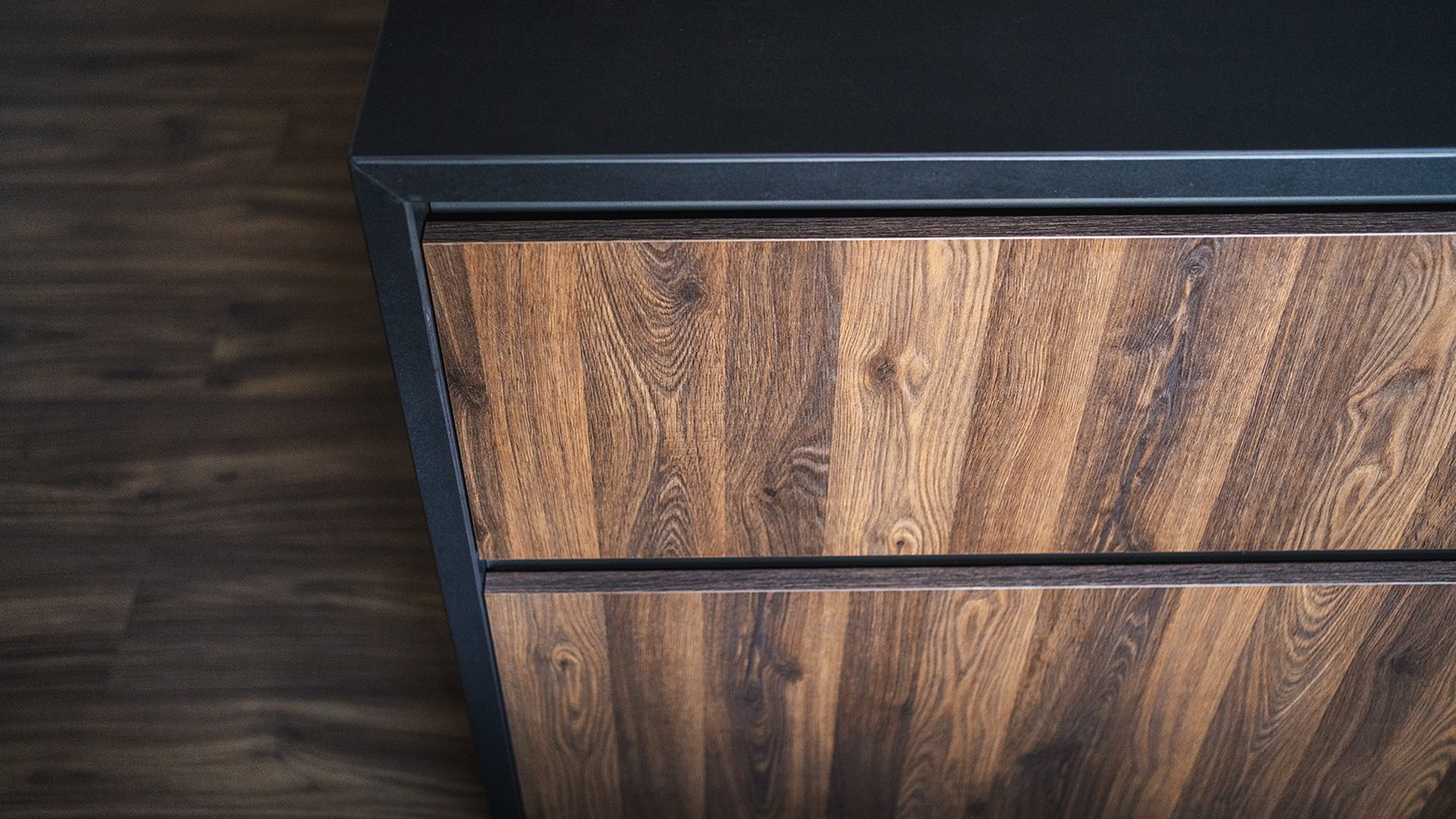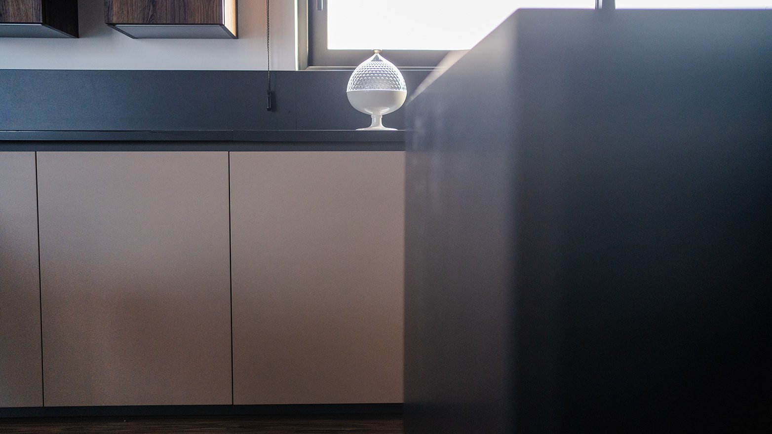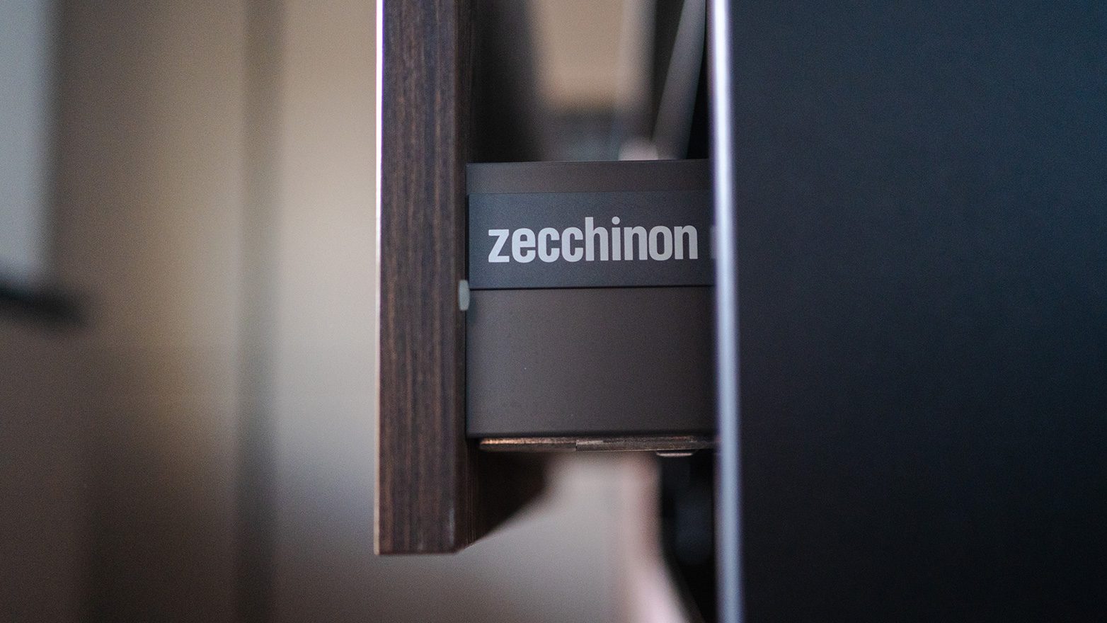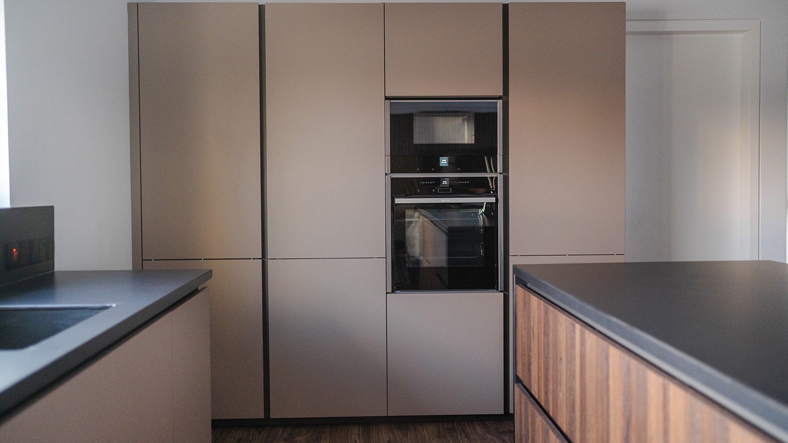 Zecchinon Cucine System Kappa, Sharon and Kalea are selected for a highly functional result and a ‘statement’ profile – with upper kitchen and island modules in sherwood cotto, wooden effect, and mocca matt finish selected for the storage area module with integrated electrical appliances, as well as for the cleaning and service zone.
