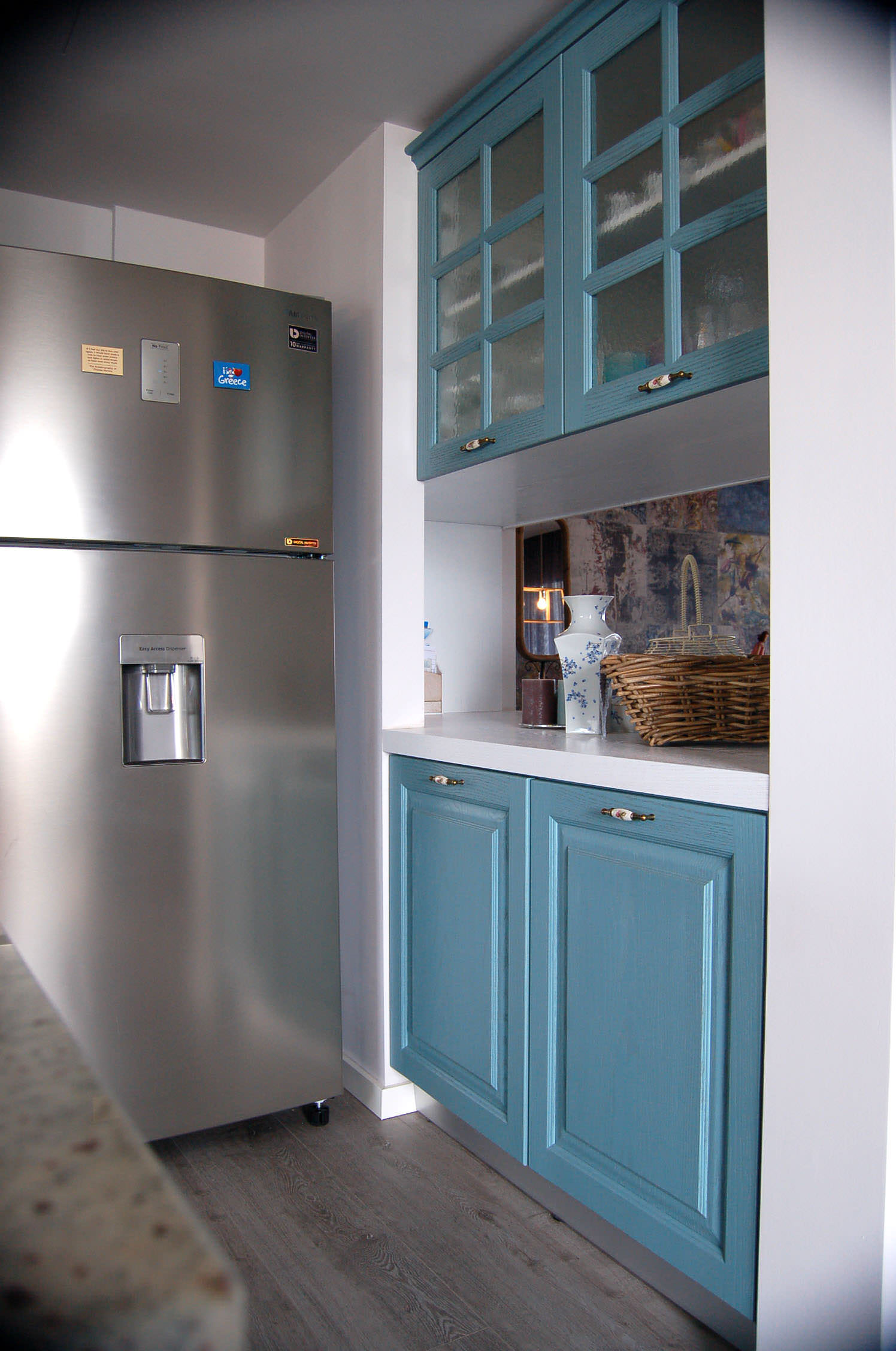 The solid wood in light blue compliments the kitchen area, as the design synthesis creates a nostalgic feeling that celebrates the #morethanliving concept.