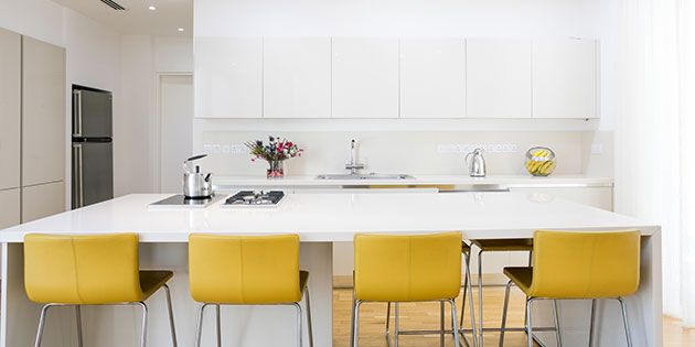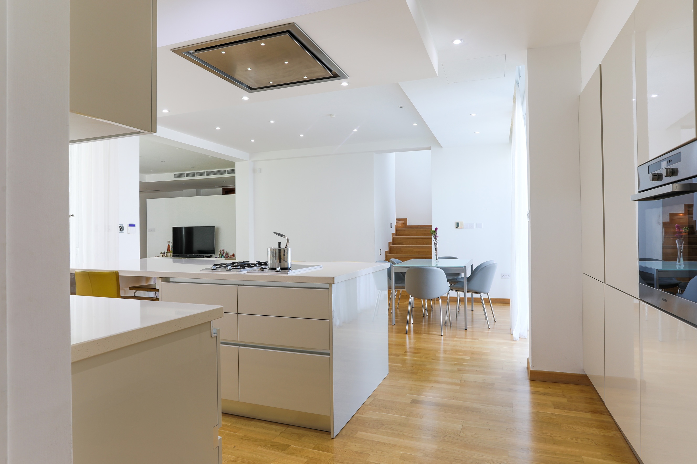 The new kitchen is developed with Gruppo Euromobil’s Filo Vanity Top model to deliver a simple though innovative