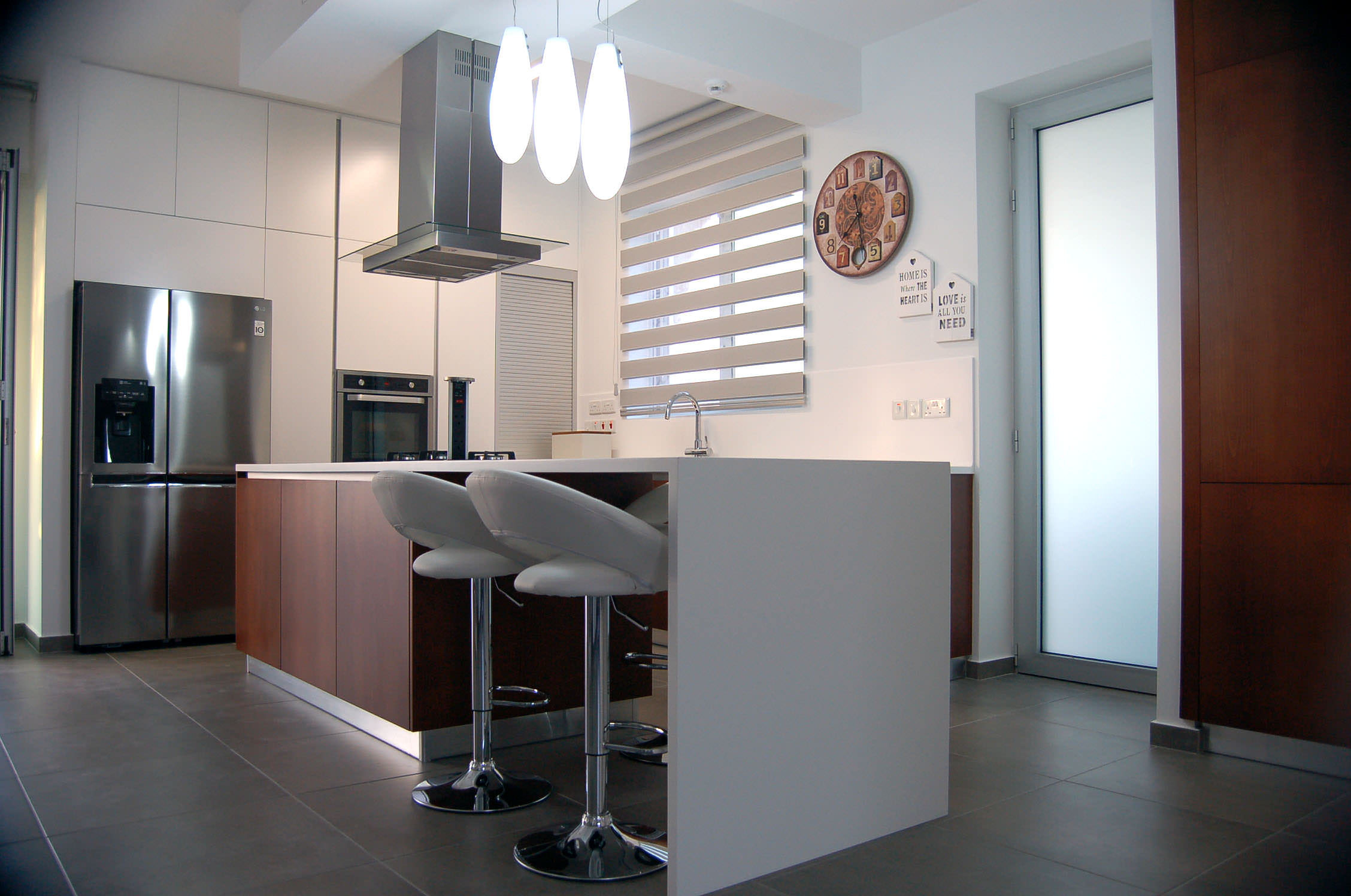 Kitchen Studio Living & More Interior Design Team’s latest kitchen project is developed in a way that embraces the contemporary style of this beautiful residence in Livadia.